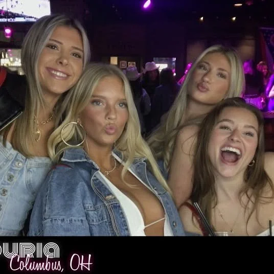 Group of five young women smiling and posing at a nightclub or bar in Columbus, Ohio.
